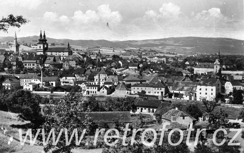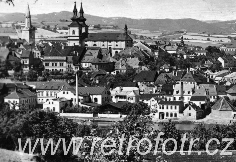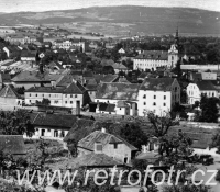 Snímek města Kadaně z třicátých až čtyřicátých let.