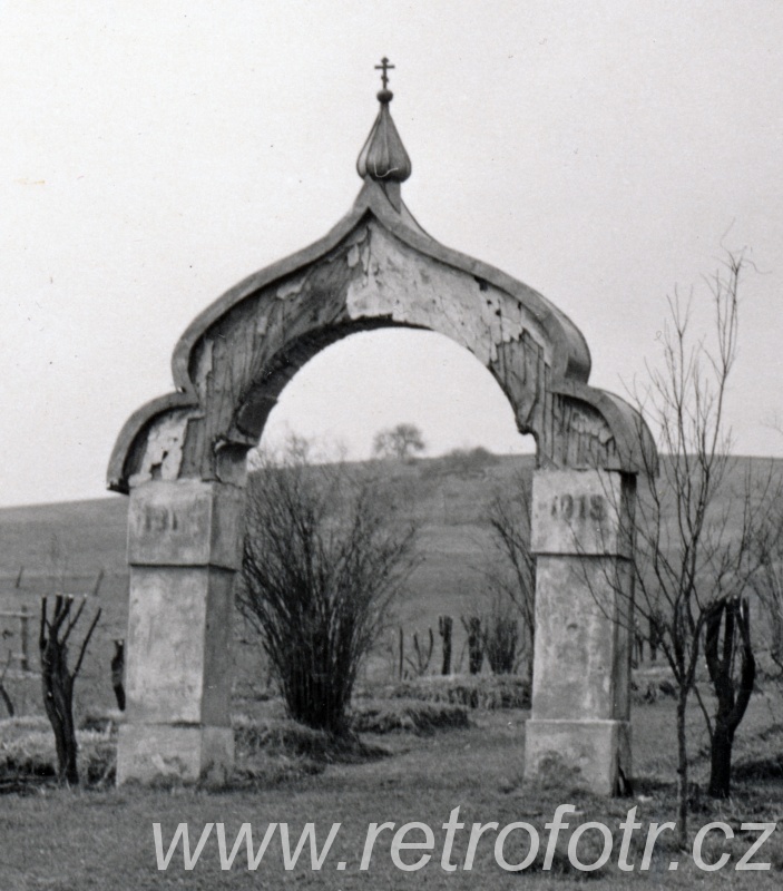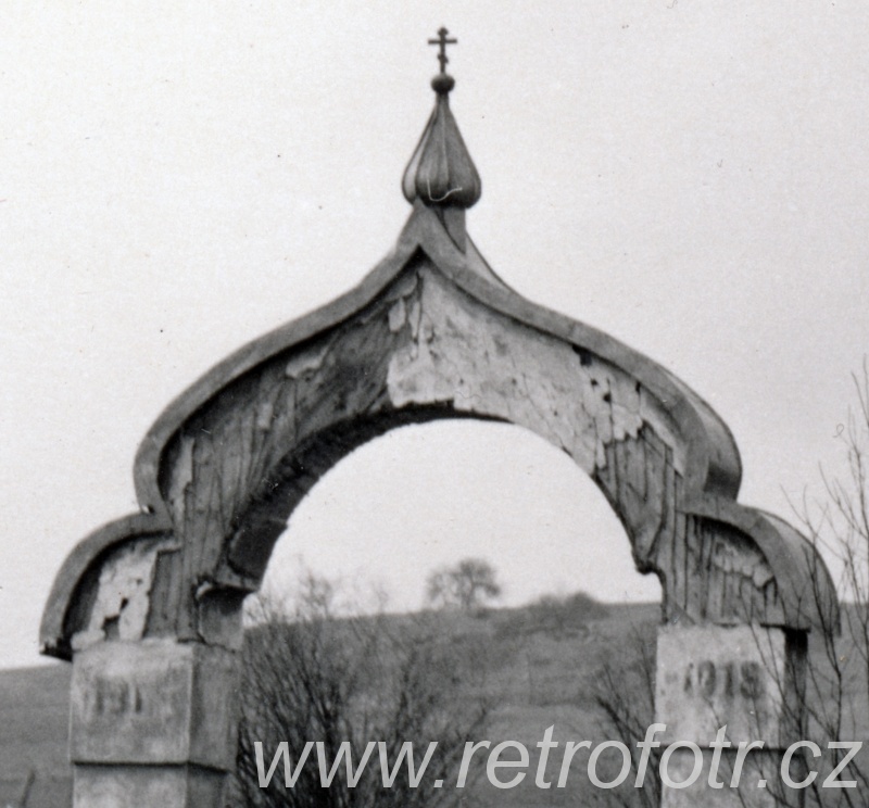 Zajímavý snímek válečného hřbitova v obci Ladomírová na východním Slovensku. Leží zde ruští vojáci padlí v První světové válce. Fotografie je z 50. let. Dnes je hřbitov mnohem méně patrný.