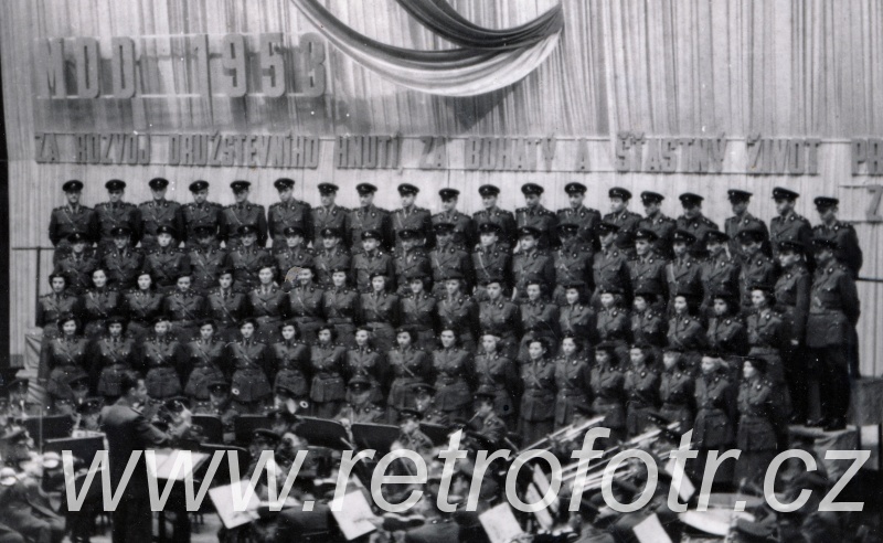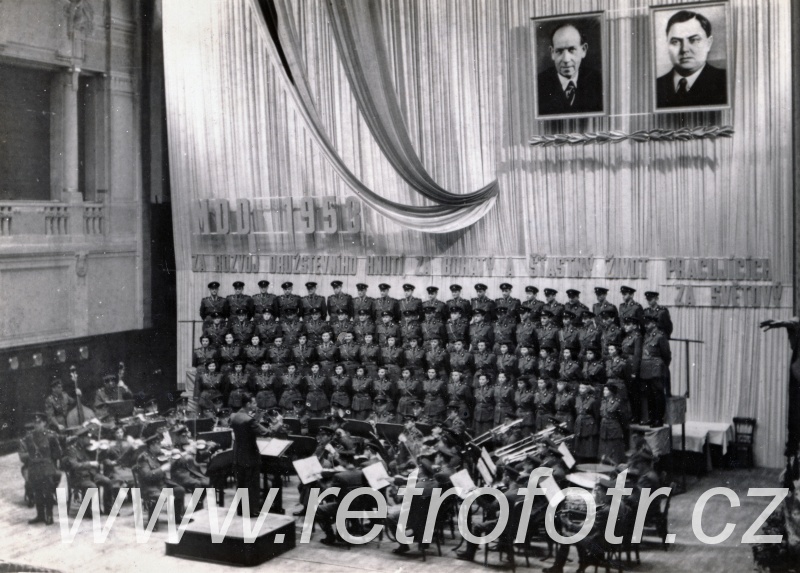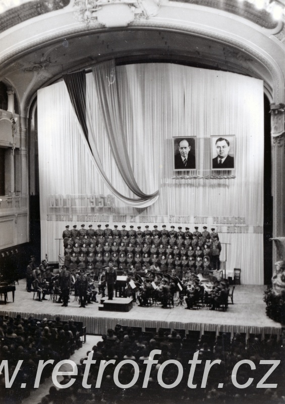 Snímky z koncertu armádní hudby u příležitosti Mezinárodního dne družstev. Rok 1953.