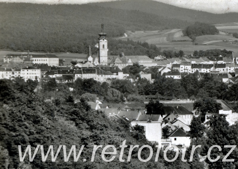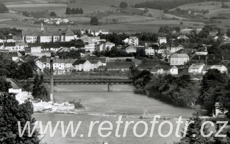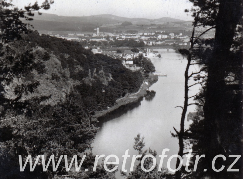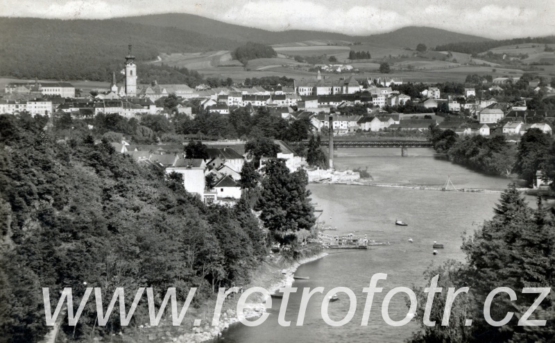 Pohled na Písek na řece Otavě. Třicátá léta.