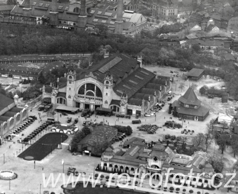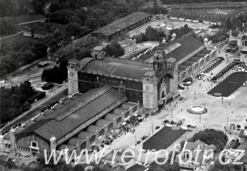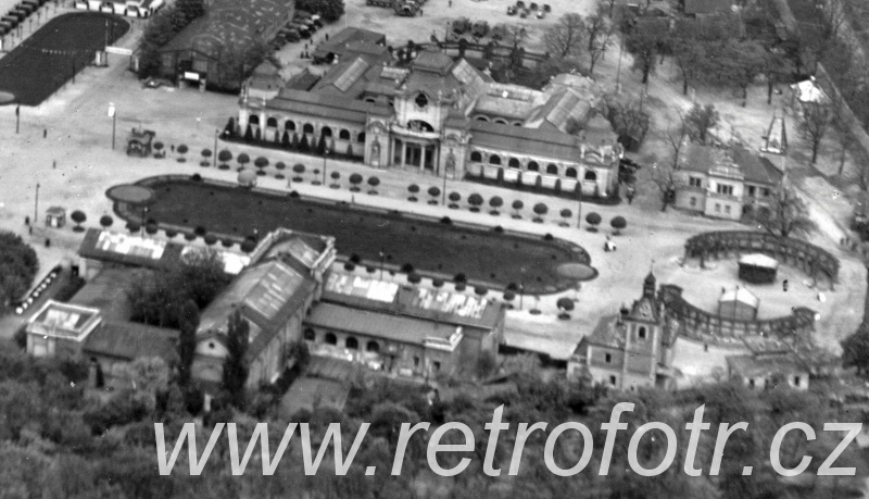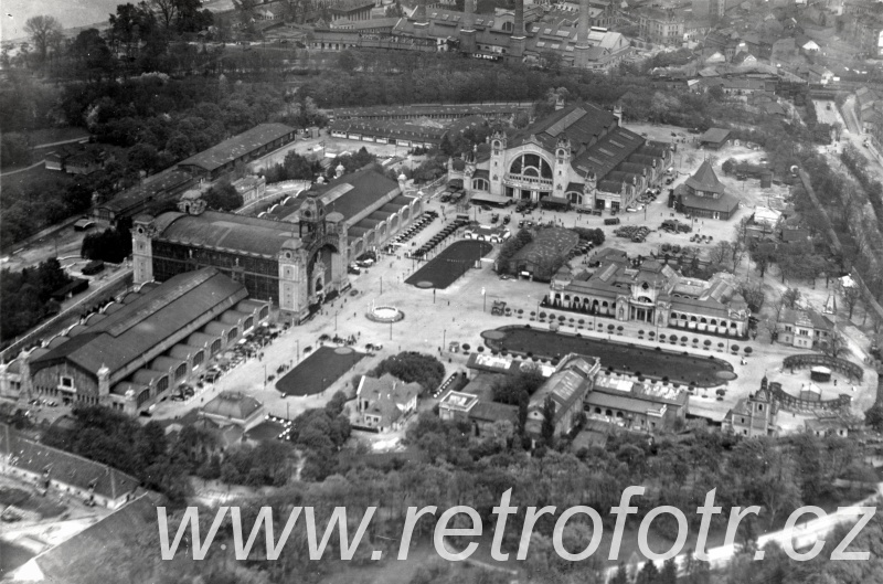 Letecký snímek výstaviště v Holešovicích. Dvacátá až třicátá léta.