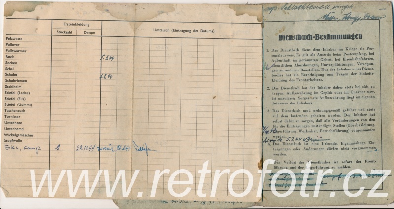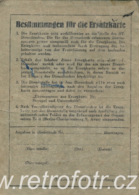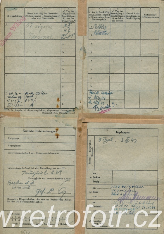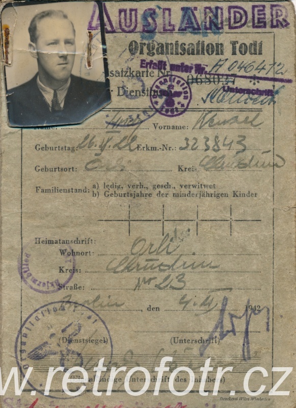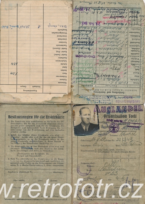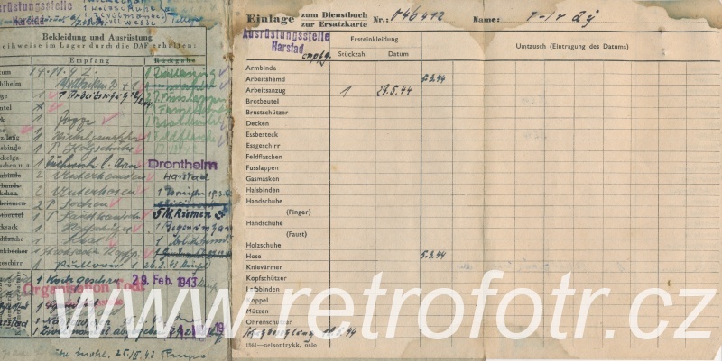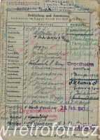 Snímky dokladu Čecha, který byl za druhé světové války poslán z Protektorátu na práci do Norska.