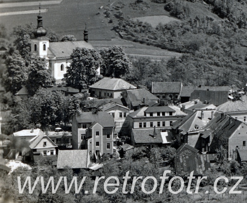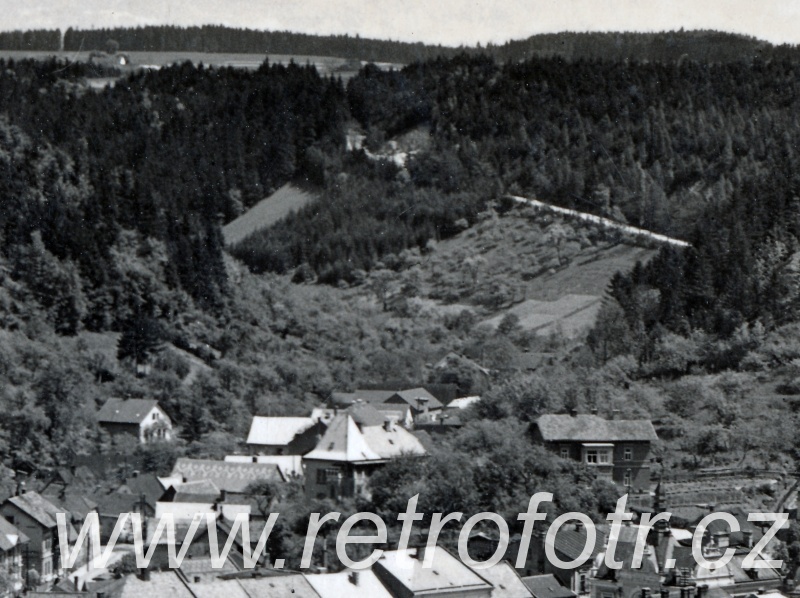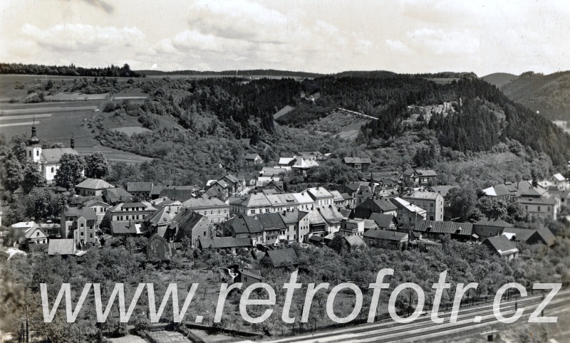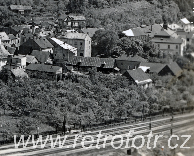 Pohled na železniční trať a Brandýs nad Orlicí. Třicátá léta.