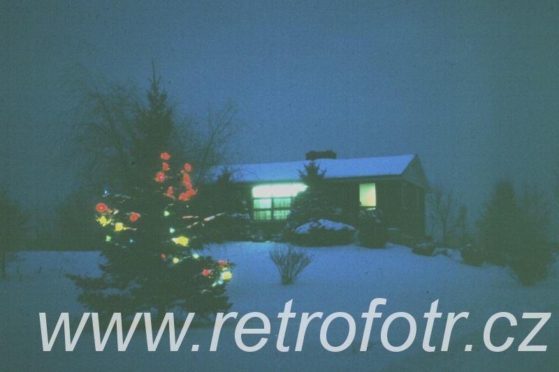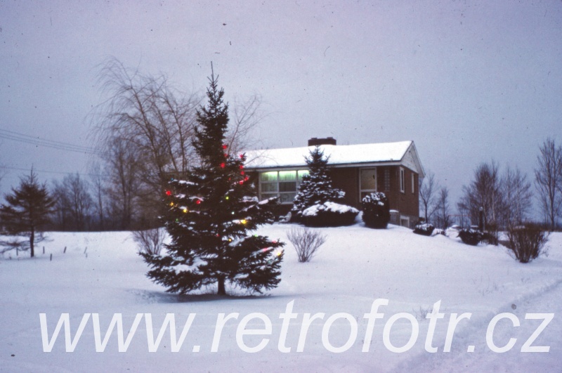 Vyzdobený vánoční strom v Americe. Stát New York, kolem roku 1971.