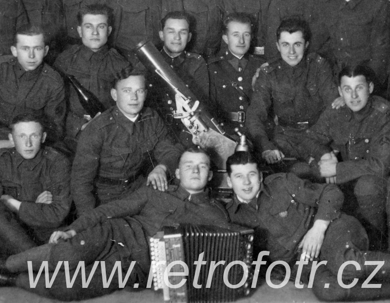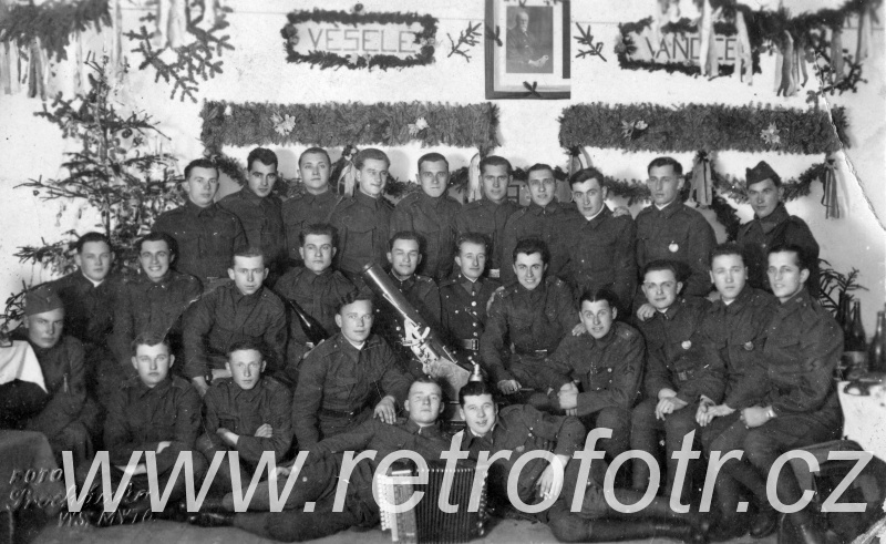 Společná fotografie vojáků v době vánočních svátků. Vysoké Mýto, třicátá léta.