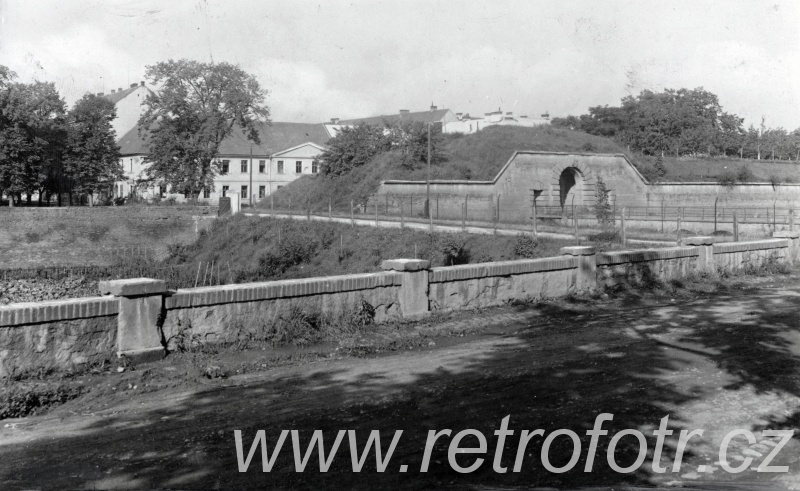 Brána do pevnosti. Možná Josefov. Zhruba První republika.